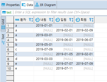 e환자를 보면 min(내원) = null, min(입원) = 2019-07-07이므로