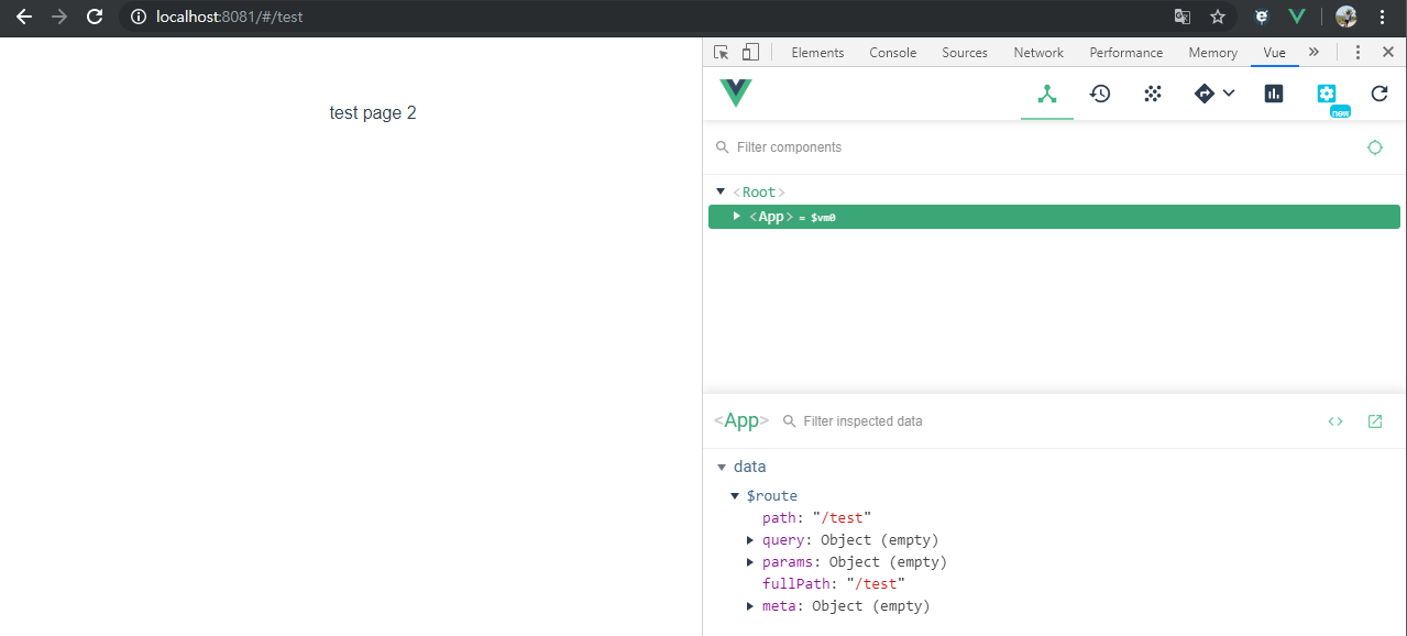import Vue from 'vue' import App from './App.vue' import { router } from './router/index.js'; Vue.config.productionTip = false new Vue({ render: h => h(App), router }).$mount('#app')위와 같이 코딩을 마친 후 npm run serve를 터미널에 입력 후 router에서 입력한 path 'test'와 'test1'로 접속해보자.