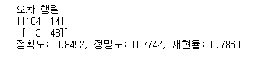 이 글 상단의 케글의 타이타닉 데이터와 LogisticRegression알고리즘을 활용한 모델의 정확도 정밀도 재현율이 같은 것을 확인할 수 있다.