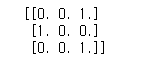 from sklearn.preprocessing import Binarizer X = [[ 1, -1, 2], [ 2, 0, 0], [ 0, 1.1, 1.2]] # threshold 기준값보다 같거나 작으면 0을, 크면 1을 반환 binarizer = Binarizer(threshold=1.1) print(binarizer.fit_transform(X))