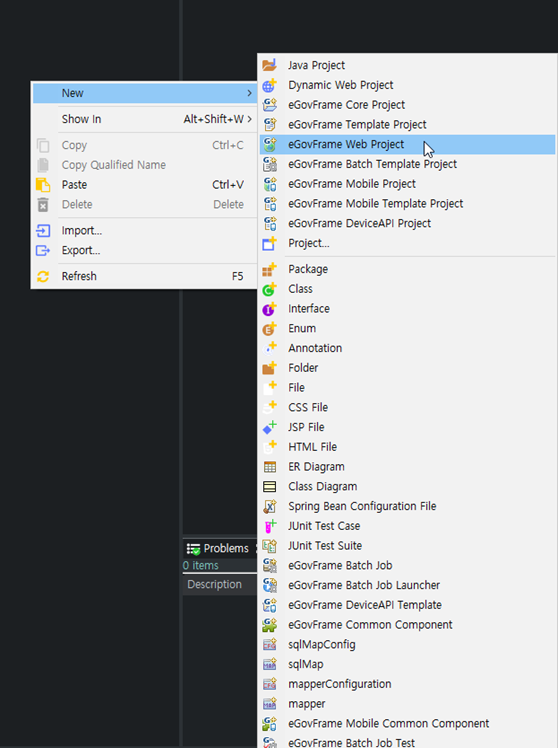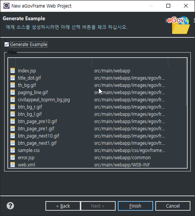 아래의 그림과 같이 eGovFrame Web Project를 선택한다.
