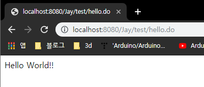 localhost:8080/Jay/test/hello.do로 들어가시면